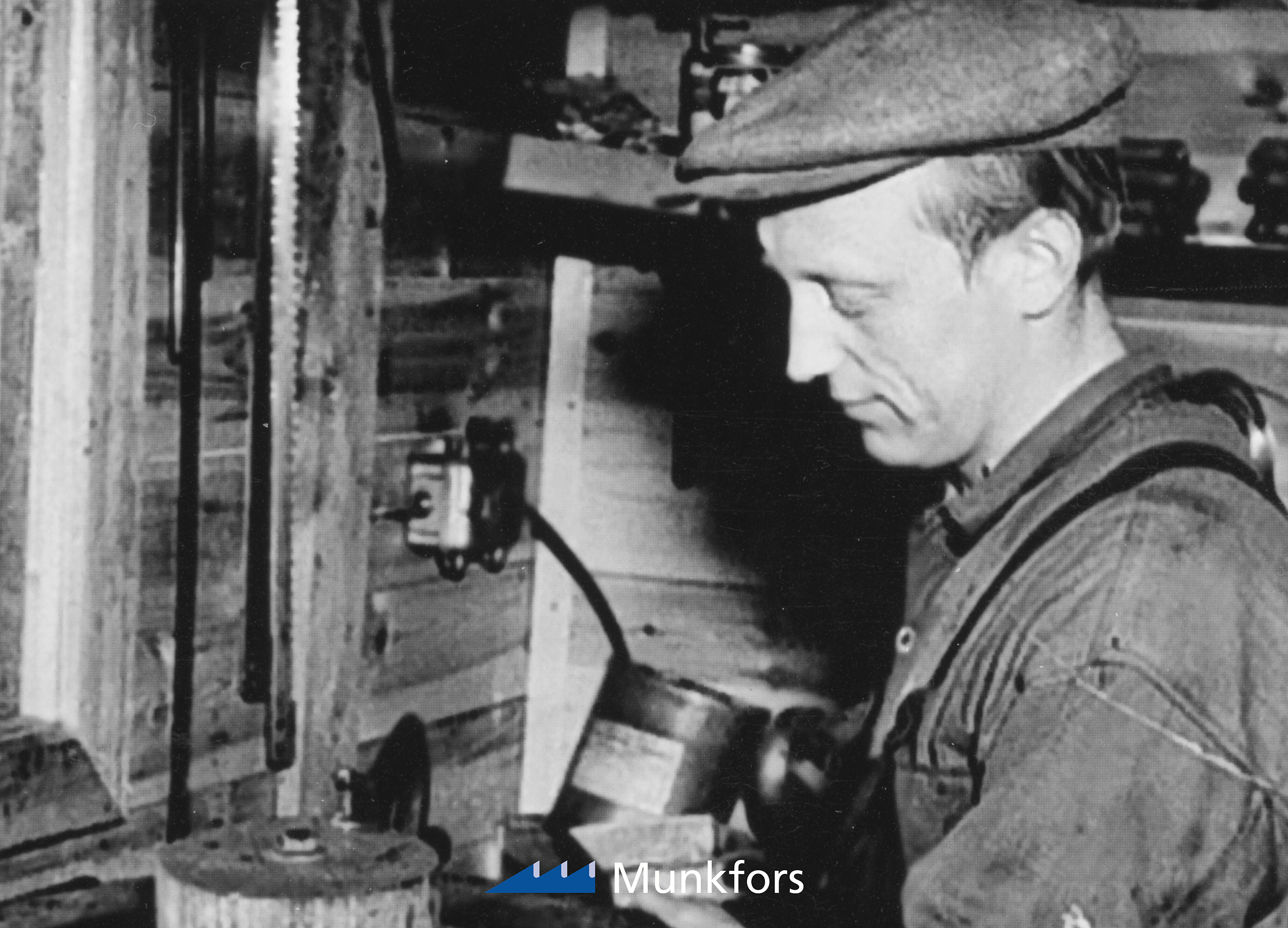At the age of 23, Anders Hallberg starts his own saw works under the name Hallbergs Sågindustri. With a loan of 1 500 kronor he buys the basic equipment he needs and begins work in a small shed, just 15 m2, in his father’s garden.